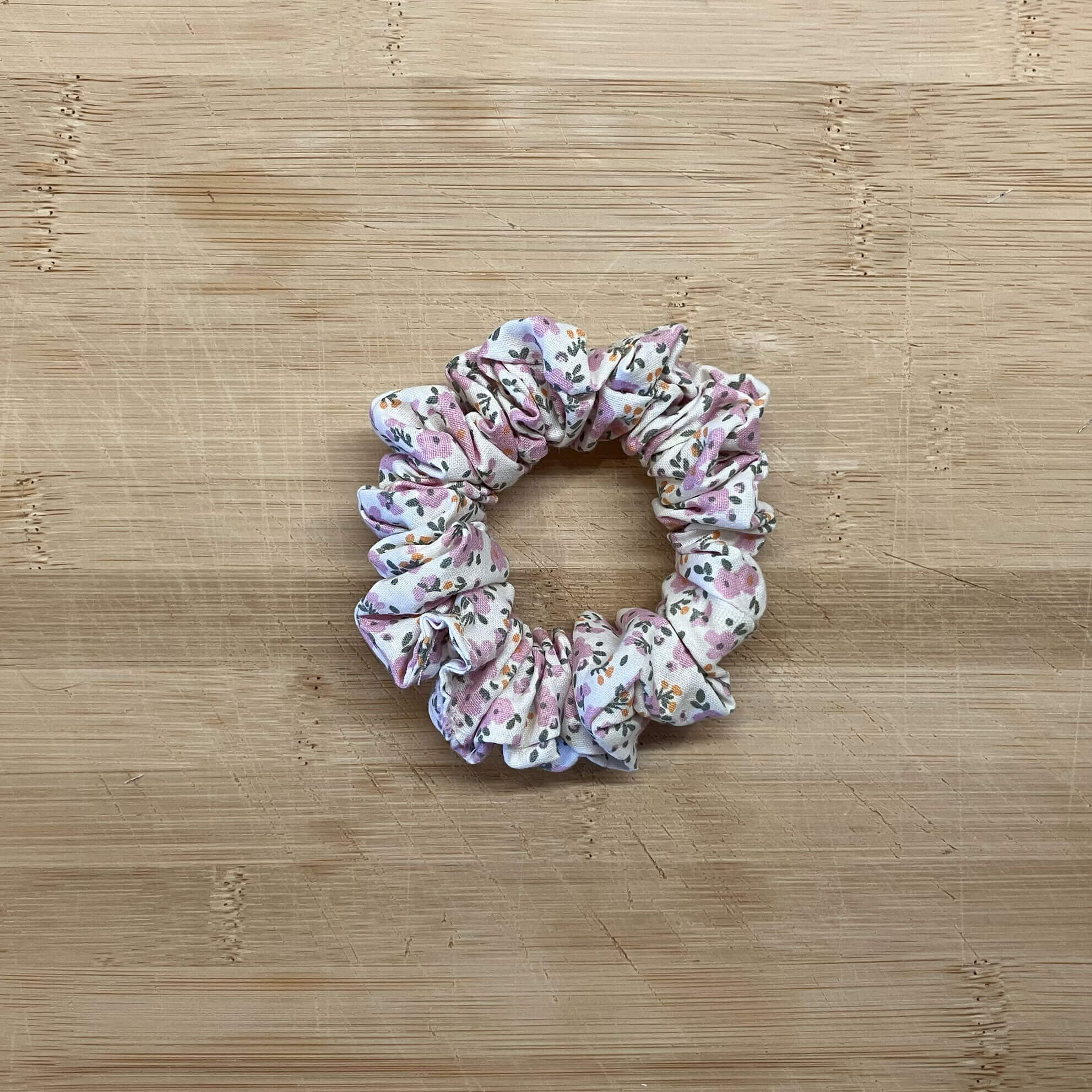 MLV White Lila Flowers Scrunchie (Small)